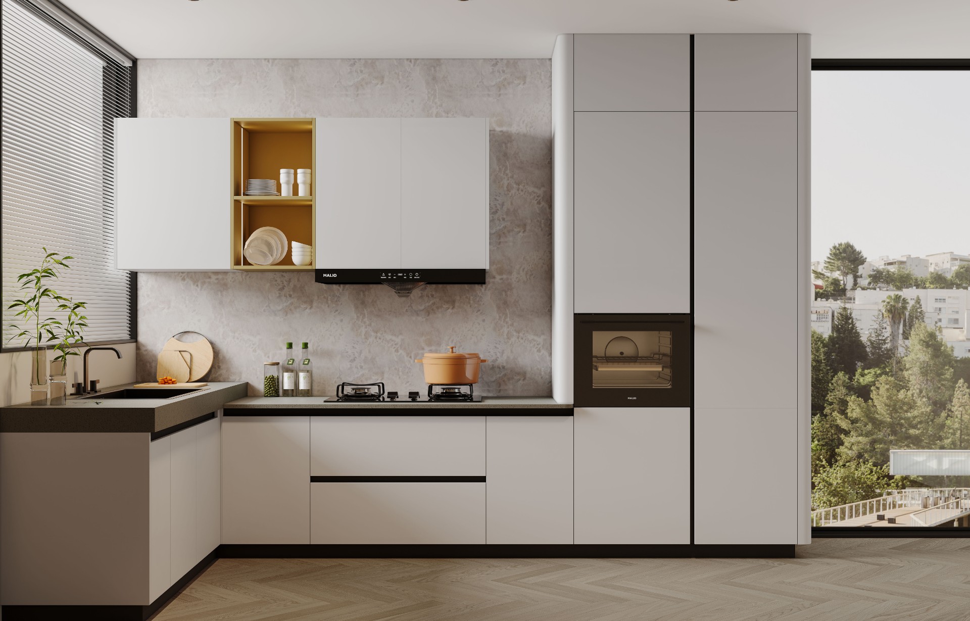必一·运动(B-Sports)厨柜地柜比传统地柜深度多出30mm,台面深度630mm比传统台面多30mm,更大空间,更好用。